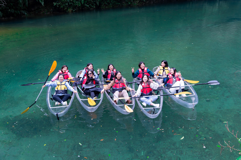當(dāng)天上午,集團(tuán)公司全體女職工乘坐大巴,歷經(jīng)三小時(shí)路程到達(dá)了中國(guó)仙本那——鶴峰屏山大峽谷。屏山大峽谷地勢(shì)險(xiǎn)要,風(fēng)光奇特,四周峭壁聳立,谷底的河水清澈見(jiàn)底,構(gòu)成了十分罕見(jiàn)的地縫風(fēng)光。乘坐小舟蕩漾在碧水之上,猶如懸浮在空中一般。深入谷底,峽谷地縫的雄、奇、險(xiǎn)、秀一一呈現(xiàn)在眼前,讓人不禁慨嘆大自然的鬼斧神工,大家紛紛拿出手機(jī)拍照留念。