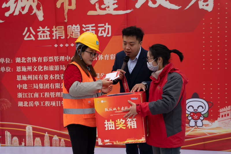 除恩施主會場外,“致敬城市建設(shè)者”公益捐贈活動還在湖北省14個體彩分中心同步開展,近3000名建筑工人接受了體彩愛心人士的捐贈。